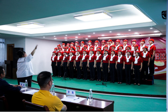 在歌詠比賽過程中,來自市自來水有限公司機關(guān)支部、生產(chǎn)支部、經(jīng)營支部、三產(chǎn)支部等四個黨支部的黨員著裝整齊,氣勢昂揚,依次登臺,用積極飽滿的激情和高亢嘹亮的歌聲贊美偉大的黨和國家,帶領(lǐng)現(xiàn)場觀眾一起重溫了那段激情燃燒的歲月。最后,來自經(jīng)營黨支部的《咱們工人有力量+社會主義好》獲得最佳組織獎。